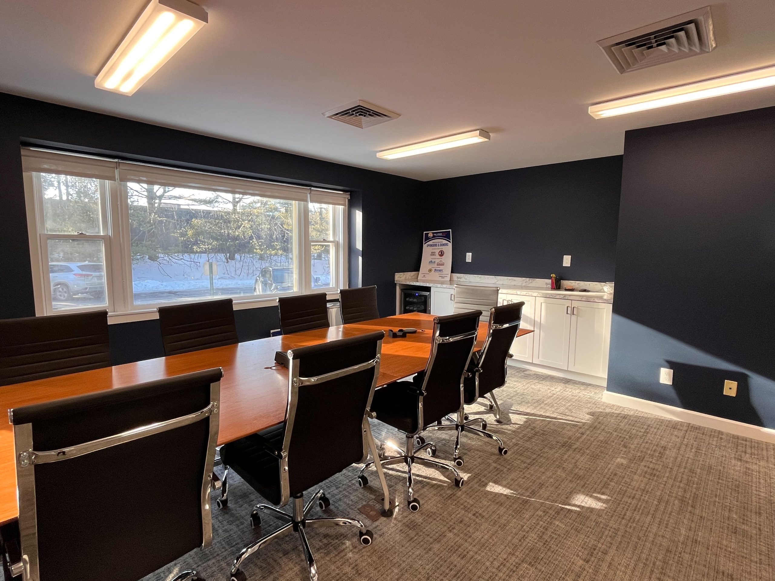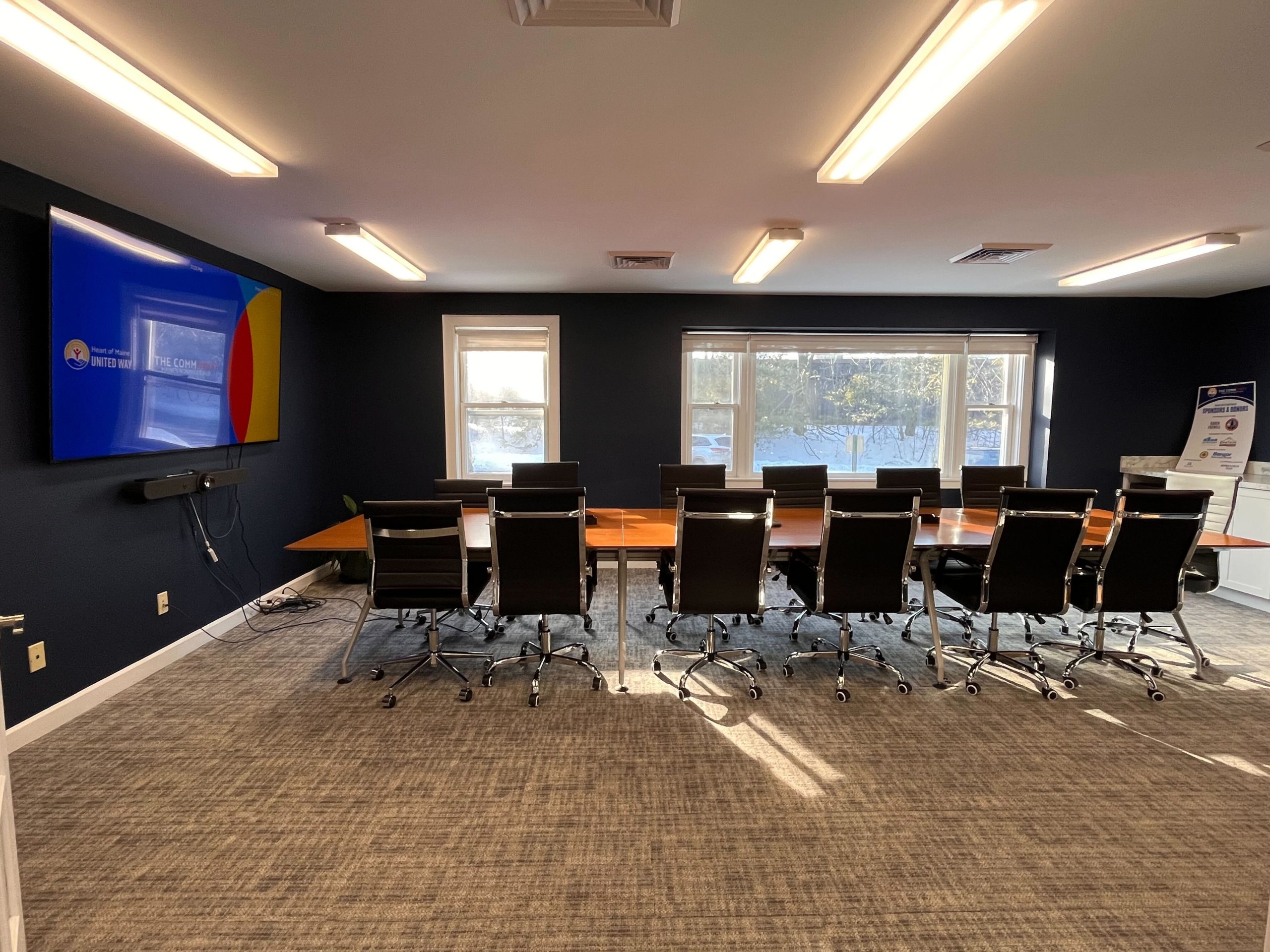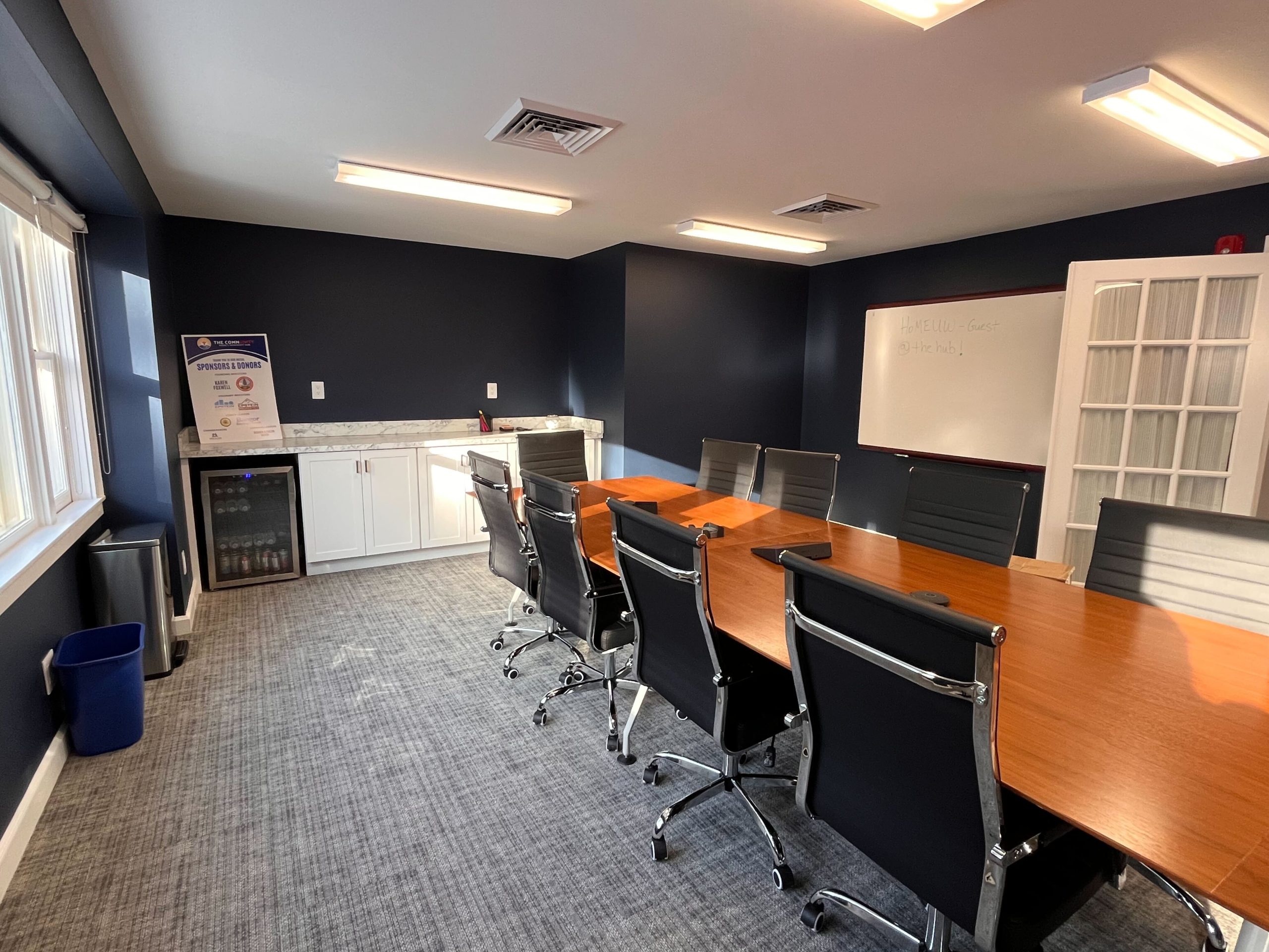 Designed for leadership conversations and strategic planning, the Board Room comfortably seats up to 14. This accessible space is ideal for board meetings, executive sessions, and important community discussions. With built-in Zoom capability, the experiencing of both hybrid and in-person attendees is seamless. If you are hosting an event and would like to bring in catering, there is a countertop available for setup, along with a mini fridge.