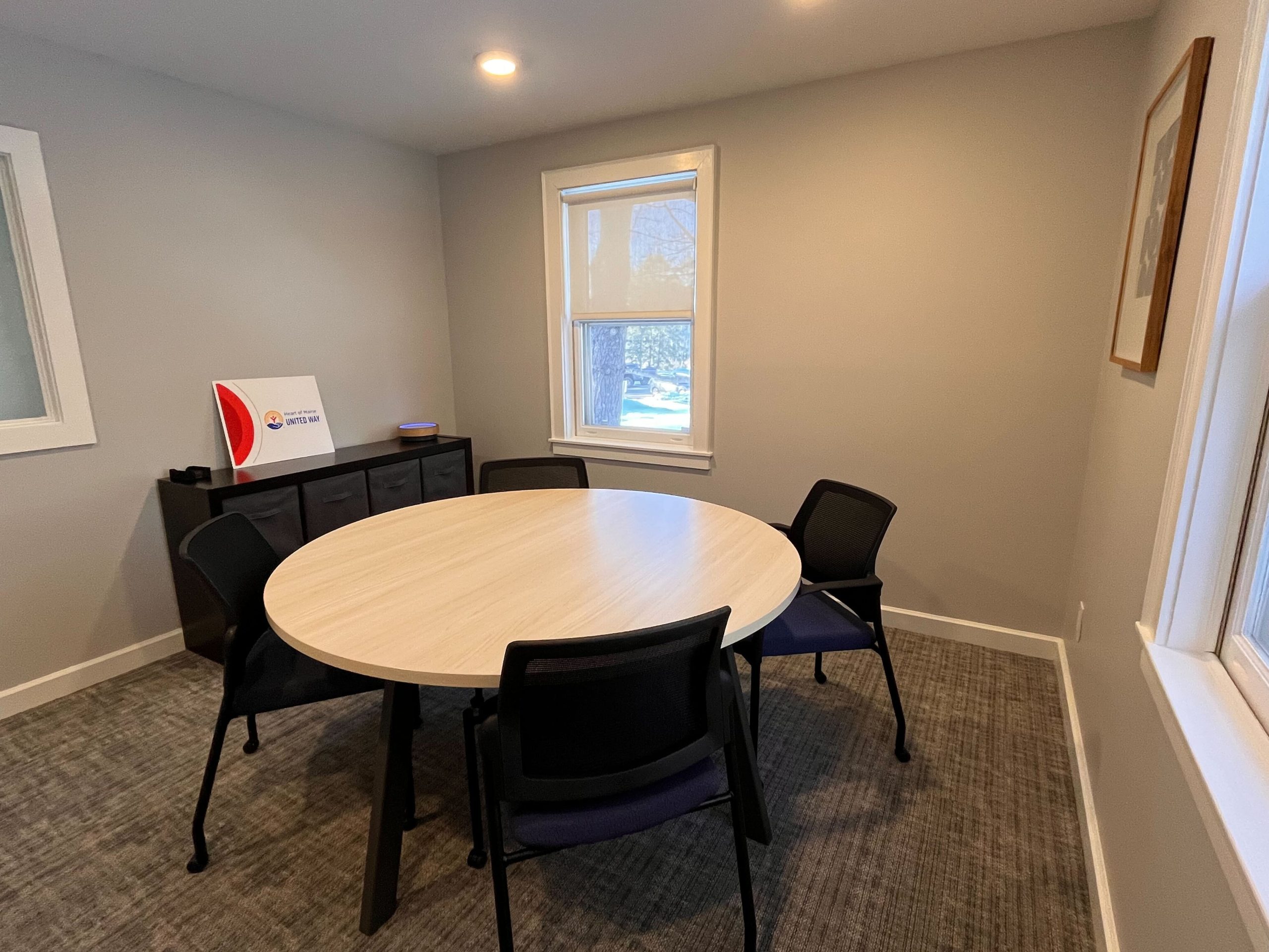 A comfortable, private meeting space ideal for small team conversations, one-on-ones, or focused planning sessions. Designed for gatherings of up to four, this room offers a quiet, professional setting for meaningful work. Its location right off the lobby makes it easy to navigate to and good for drop-in conversations.